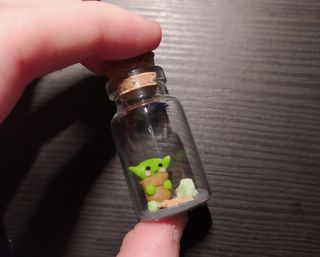 (ENVÍOS ÚNICAMENTE POR CORREOS O WALLAPOP A 1€, EL RESTO DEL IMPORTE POR BIZUM O PAYPAL) Botellita de cristal de Baby Yoda. Está realizado en arcilla polimérica. La botellita tiene unas medidas de 2cm diámetro x 4cm de alto. (Puedes consultar el precio de las botellas personalizadas en la publicación de precios de mi perfil) Entrego en mano en la zona de Cuenca y Albacete. Cualquier duda pregúntame ^^