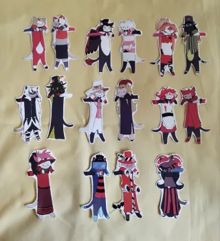 Pegatinas de la serie de Hazbin Hotel en versión gatitos alargados. El diseño lo hice en Procreate y están recortadas a mano por mí. Miden aprox. 9ctm También creé la etiqueta de los sets. Cada set contiene 7 pegatinas: Niffty,Alastor,Ángel,Husk,Charlie,Vaggie y Sr.Pentious. (Cada set vale 5€) Lucifer,Cherry y Lilith se tienen que comprar por separado (1€ cada 1). Este set solo contiene los personajes que se alojaron en el hotel de la 1° temporada También puedo vender pegatinas sueltas(1€ cada 1) Compras lo que ves Puedo hacer envíos Más productos en mi perfíl