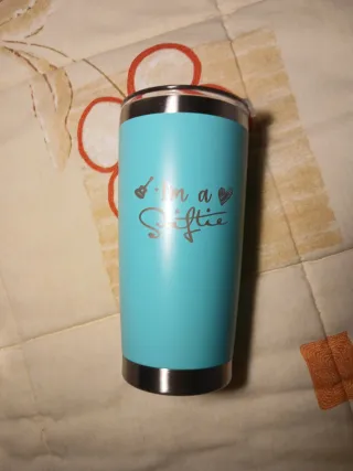 Vaso térmico de color azul con diseño Swiftie y detalles de guitarra y corazón. - Capacidad: 500ml - Material: Acero inoxidable - Tapa: Incluida