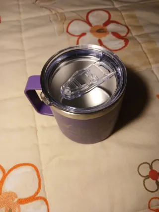 Taza térmica morada con diseño de Taylor Swift. Ideal para fans de la artista. - Color morado vibrante. - Diseño grabado con el nombre de Taylor Swift y un corazón.
