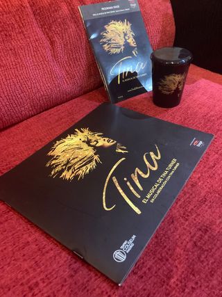 Programa del musical Tina, Libro El Musical de Tina Turner Vaso grande Tina Vaso pequeño Tina - Diseño con imagen de Tina Turner y detalles dorados. - Incluye información sobre el espectáculo. - Portada con el logo de Stage.
