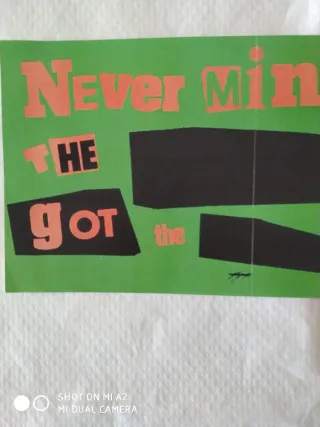 Tamaño 47x16cm Papel Verjurado Cartel del álbum Never Mind the Bollocks, Here's the Sex Pistols de Sex Pistols. - Diseño con texto en naranja y negro sobre fondo verde. - Incluye Sex Pistols y Never Mind the Bollocks.