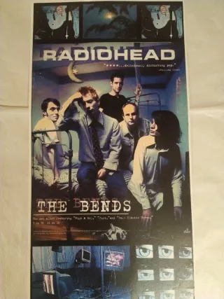 Tamaño 33x64cm Papel Verjurado Póster promocional del álbum The Bends de Radiohead. - Incluye la portada del álbum con la banda. - Menciona High & Dry, Just y Fake Plastic Trees.