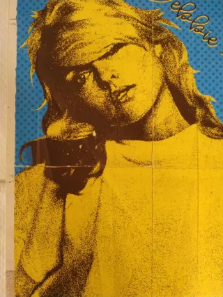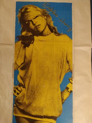 Tamaño 32x67cm Papel Nautilius 300gr Póster de la icónica banda Blondie, con Debbie Harry. - Diseño artístico en amarillo y azul. - Texto Debbie Harry en la parte superior.