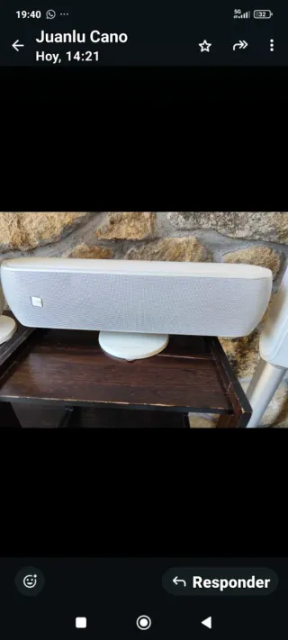 Pareja de altavoces JBL de diseño esbelto y moderno. Ideales para complementar tu sistema de sonido. - Acabado en tela a cuadros. - Base plateada. - Logo de la marca visible.