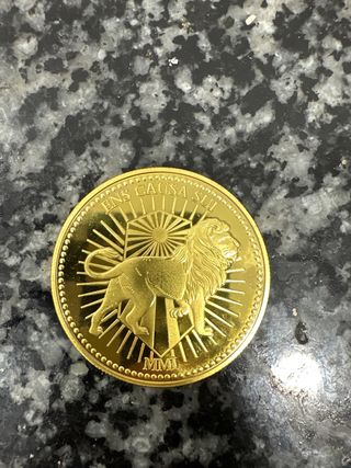 Moneda de coleccionista de la película Ballerina. - Diseño dorado con detalles grabados. - Inscripción EX UNITAE VIRES en la parte superior. - Motivo central con figura y laureles.
