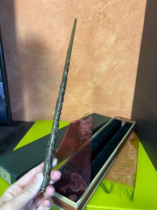 Varita de Harry Potter con su caja original. - Diseño detallado con motivos de enredaderas. - Incluye caja de presentación forrada en terciopelo.