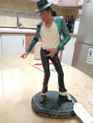 Figura decorativa de Michael Jackson hecha de resina. - Base con acabado estrellado. - Inscripción MICHAEL JOSEPH JACKSON en la base. La figura ha sido reparada, suelen tener precios mucho más altos de ahí este precio, altura 27 centimetros