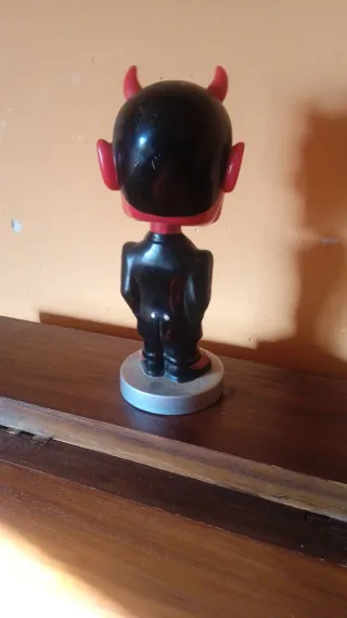 Figura decorativa del personaje El Diablo. - Diseño con traje negro y corbata roja. - Cabeza con cuernos y expresión pícara. - Base redonda con el nombre El Diablo.