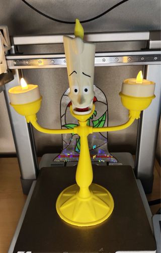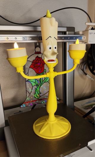 Figura decorativa de Lumiere, el candelabro de La Bella y la Bestia. - Diseño inspirado en el personaje. - Fabricado con impresión 3D. - Color amarillo. - Velas de pila incluidas.