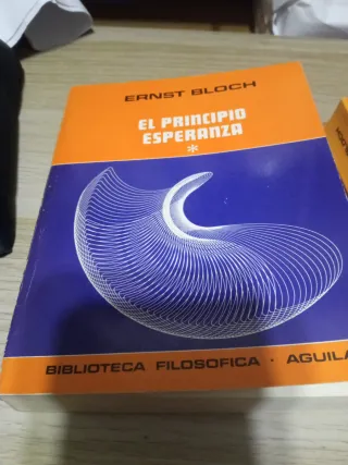 Es una obra filosófica fundamental escrita durante el exilio de Bloch entre 1938 y 1947. La obra explora la dimensión utópica del ser humano y su orientación hacia el futuro. La esperanza, para Bloch, no es una emoción pasiva, sino una fuerza activa que impulsa la historia y la acción humana. La edición que se muestra pertenece a la colección "Biblioteca Filosófica" de la editorial Aguilar. El libro aborda la condición humana y busca dar sentido a las luchas sociales. Tomos 2 y 3 tiene sellos en primeras páginas.