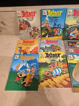 Se trata de una colección de 12 cómics de Astérix y Obélix, bilingue ingles -catalan de tapa dura editados el 1996. Estos álbumes cuentan las aventuras de Astérix, un inteligente guerrero galo, y su amigo Obélix, quienes resisten al Imperio Romano gracias a una poción mágica.
