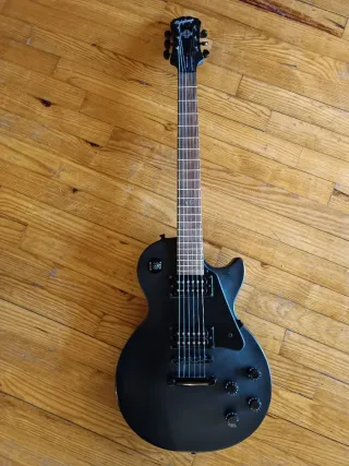 Guitarra eléctrica Epiphone Les Paul Studio Sonido profundo y potente En perfecas condiciones Escala corta, comoda de tocar Mucho sustain Lleva cuerdas nuevas - Diseño estilo Les Paul. - Acabado Gothic. - Pastillas humbucker.