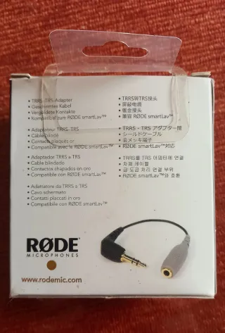 Adaptador de conector de cámara/micrófono con salida TRS de 3'5 mm a Smartphone/tablet... Rode SC3, nuevo a estrenar. - Conector TRRS a TRS. - Blindajes chapados en oro para audio superior y sonido sin ruidos. - Ideal para conectar micrófonos a dispositivos. - Color gris y negro.