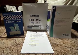 Vendo completo material de estudio para las oposiciones de Policía Local en Castilla-La Mancha. Incluye: • 📘 Libro de test “Oposiciones de acceso y ascenso Policía Local” Contiene preguntas tipo test actualizadas de distintos ayuntamientos de Castilla-La Mancha. • 📒 Temario completo en carpeta “Policía Local Castilla-La Mancha”, perfectamente organizado por temas y con esquemas y legislación actualizada. Ideal para preparar el acceso.