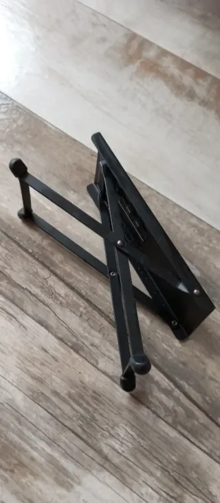 Reposapiés metálico negro para guitarra. Su diseño plegable lo hace fácil de transportar y almacenar. WhatsApp 675985777. No envío. - Superficie antideslizante. - Patas con goma protectora. - Estructura robusta.
