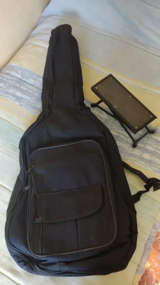 Se vende funda para guitarra + un reposapiés gratis - Funda de color negro. - Reposapiés metálico.
