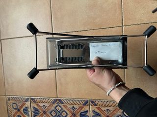 Reposapiés para guitarra, plegable y fácil de guardar. Está en buen estado, aunque presenta algunas señales de uso. - Plegable para facilitar su transporte y almacenamiento. - Superficie antideslizante. - Estructura metálica resistente.