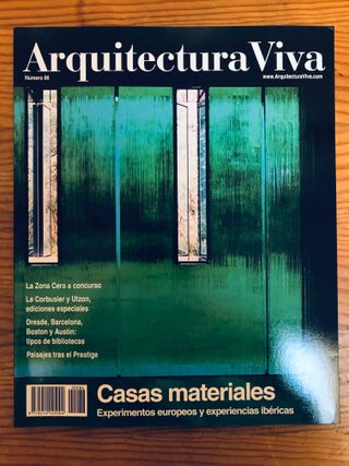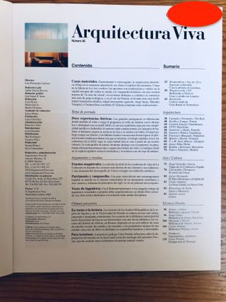 Revista Arquitectura Viva 86 - Casas materiales. Escrito a boli el nombre del propietario en una de las primeras paginas