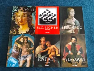 Lote compuesto por 6 revistas de Arte de la editorial TASCHEN. Contiene: 1) Diego Velázquez. 2) Rafael. 3) Miguel Ángel. 4) Leonardo Da Vinci. 5) M. C. Escher. 6) Sandro Bottichelli. Lote completo 28€ Sueltas a 5€ cada una.