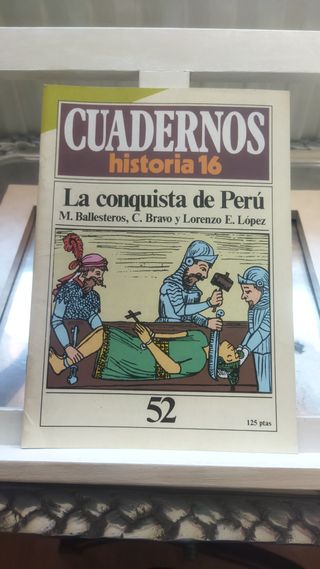 10 Cuadernos Historia 16 *tomo 6º* -51-Las Cortes medievales de J.Valdeón, J.L.Martin, A.Sesma, E.Sarasa , S.Romeu, J.M.Lacarra y M.J.Lagos -52-La conquista de Perú de M. Ballesteros, C. Bravo, Lorenzo E. Lopez -53-Jaime I y su época de J. Sobrequés, C. Batlle, M. Sanchis, J.L. Martin y A. Altisent -54-Los etruscos de A. Blanco, J.M. Blázquez, M.A. Elvira y M.P. González -55-La revolución mexicana de Vicente González y Pedro A. Vives -56-La cultura del Siglo de Oro de Mariano Peset y José Luis Peset -57-Hitler al poder de José M. Solé, Carlos Forcadell y Julio Gil -58-Las guerras cántabras de R. Teja, J.M. Blázquez, J.M. Roldan y J