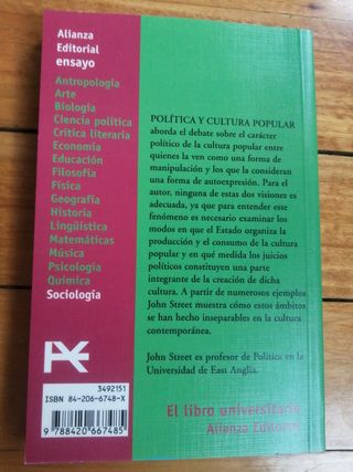 John Street. Alianza Ciencias Sociales. El libro universitario. Madrid, 2000. Sociología, populismo, cultura,