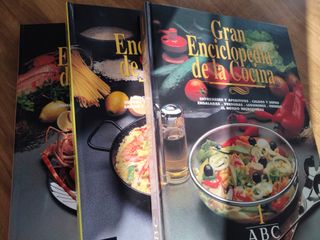 Tomos 1,2 y 3 de la Gran Encicolopedia de la Cocina editada por ABC en los años 90. Recetas de la Academia de la Cocina Española. Al final de cada tomo viene un índice de recetas del mismo. Pag. por tomo unas 380. Tapas duras.