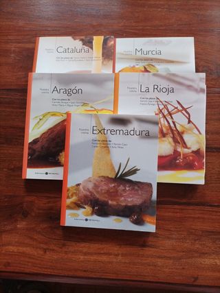 Libros de platos de cocina de comunidades autónomas: La Rioja, Extremadura, Aragón y Murcia. El de Cataluña está vendido.Son 2.50 € la unidad, si te llevas más te los puedo rebajar.