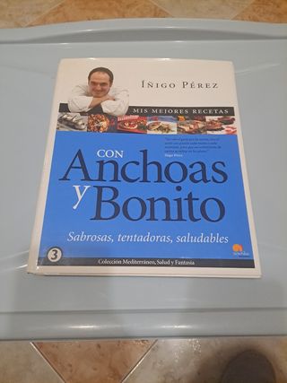 Libro, Mis mejores recetas con Anchoas y Bonito de Iñigo Pérez. Libro galardonado con el Gourmand Cookbook Award al Mejor Libro de Pescados y Mariscos 2003. Con señales del paso del tiempo .Pregunta dudas o más fotos