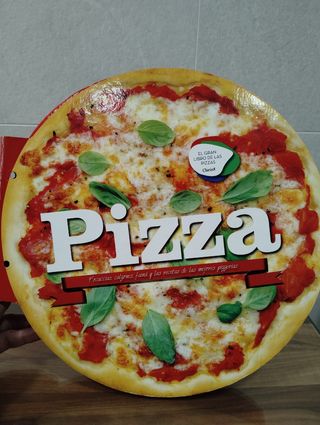 Libros de recetas de pizzas diferentes. El libro es muy original porque su forma simula una pizza. Podrás cocinar las pizzas tradicionales italianas.