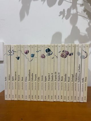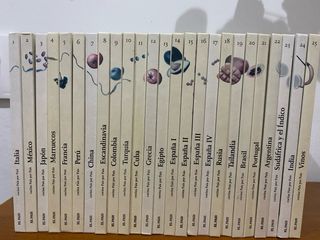 Libros de cocina con una cuidada selección de recetas de países de mundo. Incluye Italia, Mexico, Japón, Marruecos, Francia, Perú, China , Escandinavia, Colombia, Turquía, Cuba, Egipto, España, Rusia, Tailandia, Brasil, Portugal, Argentina, Sudáfrica y el Indico y la India. Miden 15 x 15 cm cada libro