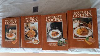 Lote de libros "Escuela de cocina" de recetas, compuesto por 12 libros, con recetas de carnes, pastas, verduras, etc.. El precio es por el lote completo.