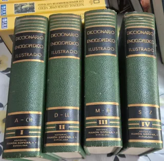 Léelo este antiguo , retro, vintage diccionario de 4vtomos de la A a la Z, y quien sabe, puedes apuntantarte y ganar Pasapalabra 🙂 Antiguo pero útil, para decoración o coleccionistas.