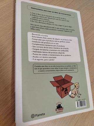 Instrucciones para leer un libro de instrucciones 1. Coja el libro de la estantería de la tienda de libros. 2. Empiece a leerlo por delante (al revés de como lo está cogiendo ahora mismo). 3. Hojéelo para ver si le interesa. 4. En caso afirmativo, diríjase a la caja y pague lo que le digan. Una vez en casa, descubrirá todo lo que necesita saber un padre y que, hasta ahora, nadie se atrevió a contarle. Capítulos tan útiles como: - Bienvenido a la secta - Enhorabuena. Está a punto de adquirir un producto líder - Compruebe que el producto está en perfecto estado - Instalación del producto en su casa - Complementos necesarios para el