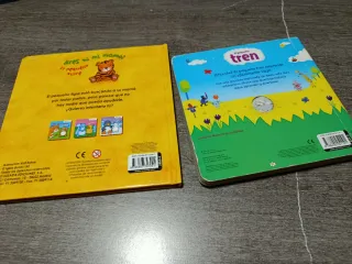 2 libros ideales para bebes, para tocar y marioneta. El pequeño tren El pequeño tigre