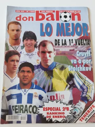 Revista Don Balón n 1007 30/01/1995 NO INCLUYE el póster. Faltan las 4 páginas del póster. Tengo más números en mi perfil. Fútbol, Football, La Liga, Primera División, Deporte, Vintage, clásico, Ronaldo, Messi, Lamine, Mbappe, Barcelona, Barça, Atlético, Premier League, Manchester, Bayern, Milan, Juventus, Benfica, Celtics, Lakers, Real Madrid