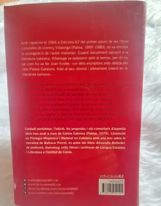 Bearn o la sala de les nines - Llorenç Villalonga (ISBN 9788415954101) Descripción Clásico de la literatura catalana en excelente estado. Autor: Llorenç Villalonga Editorial: Educació 62 (2014) Estado: Muy bueno. Sin subrayados ni páginas dobladas. Extras: Edición con material didáctico y estudio preliminar de Carles Cabrera. Ideal para estudiantes de Bachillerato (lectura de Selectividad) o coleccionistas. Año de edición: 2014 Editorial: Educaula (Grup 62) Colección: Educació 62, número 87 Páginas: 432 Encuadernación: Tapa blanda Es una edición muy valorada porque incluye el material didáctico para estudiantes