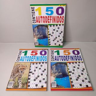 Vendo 3 Autodefinidos Números 146 y 148. Nuevo Sin Estrenar. AVISO están repetidos el Número 146. Mide 24 CM de Alto 17 Ancho. Pesa 346 gramos. Todos 3 euros. Lo entrego en El Prat de Llobregat. También lo Envío por Wallapop.