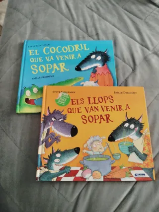 Pack de dos libros infantiles en buen estado. Els llops que van venir a sopar y El cocodril que va venir a sopar.