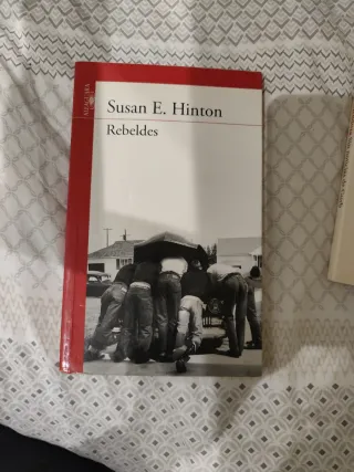 Libro de bolsillo de Susan E. Hinton. Título "Rebeldes"