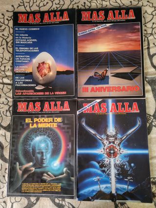Revista Más Allá.Año 1995.9 Revistas + 2 Monográficos. Están las revistas 71,72,73,77,78,79,80.81 y 82.Faltan las 74,75 y 76. Los dos monográficos son: El poder de la Mente y Sectas. Las revistas normales a 4 Euros la unidad.Los monográficos escucho ofertas por unidad.Todo el lote 26 Euros.En muy buen estado todas. Guardados en plástico especial para papel para su mejor conservación. Nota:El peso está marcado de 0 a 1 kilo.Dependiendo de cuantas revistas quieras hay que actualizarlo luego.