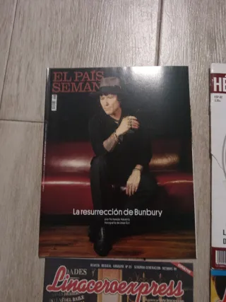 Revistas Incluye Linacero 2 revistas. Buen estado, aunque tiene pegatinas en portada. La resurrección de Bunbury. El pais semanal, Greta garbo Rockzone especial. Tiene desperfectos en portada y contraportada arreglados con cinta. Ver fotos. Pequeño descolgado de revista con respecto a portada en una de las grapas 30 hasta domingo