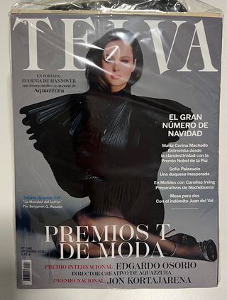 Nueva. Envuelta en su plástico. Premios TELVA de Moda. Entrevista al premio nacional: Jon Kortajarena. Premio internacional: Edgardo Osorio.