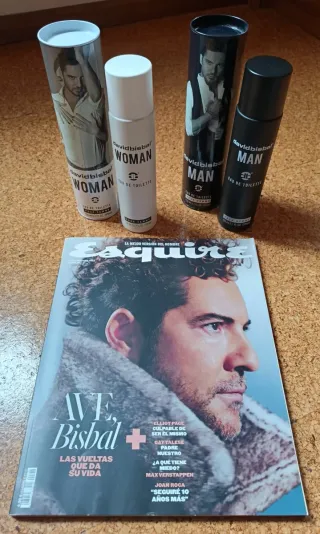 Este pack incluye: -Revista Esquire. N°178 Noviembre 2023 -Frasco colonia David Bisbal Woman. VACIO -Frasco colonia David Bisbal Man. VACIO