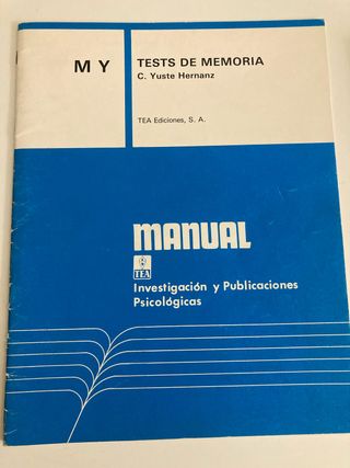 Manual, aplicación, corrección e interpretación Memoria elemental hasta 8 años Memoria I de 8 a 10 años Memoria II de 10 a13 años Memoria III de 14 a 18 años Hojas de presentación y respuestas del elemental Hojas de respuestas del I Hoja de respuesta del II Plantillas corrección de todos los nuveles Cuadernillo y hoja respuestas del III Regalo 20 hojas de respuestas de cada nivel Precio con más del 60%. Negociables según los que se compren del perfil