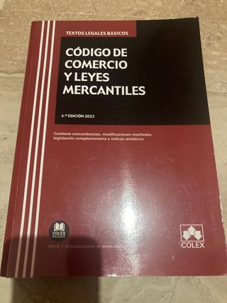 Código de comercio y leyes mercantiles. Cuarta edición 2023. Textos legales básicos. Contiene concordancias modificaciones resaltadas. Legislación complementaria e índices analíticos. Colex