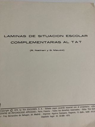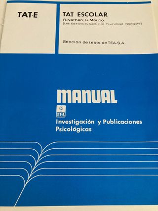 Manual, estudio, láminas, casos... T de apercepción temática (escolar) Prueba proyectiva personalidad Contiene las 5 láminas Es un complemento del Test de Murray Precio a más de 60% y negociable según lo que se compre del perfil