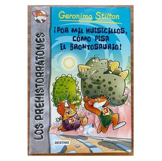 ¡POR MIL HUESECILLOS, CÓMO PESA EL BRONTOSAURIO! - Están a punto de comenzar los juegos más famosos de la prehistoria, ¡las Prehistolimpiadas! Tras las eliminatorias de Cachiporra Aplasta Cachiporra y la final de Lanzamiento de Gritos, Geronimo y Metomentodo se verán las caras con Tiger Khan y sus esbirros en una aventura? ¡megalítica!. Geronimo Stilton, Los prehistorratones 6, editorial Destino, ISBN 978-84-08-12283-8, 9788408122838, PVP8,95€ # libro lectura ficción narrativa infantil #C5