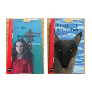 Uno 5€ y los dos por 7,50€ (KAVIK, EL PERRO LOBO y LA HIJA DEL ESPANTAPÁJAROS). Loella, una chica de doce años, tiene como mejor amigo a Papá Pelerín, el espantapájaros. Su madre está siempre de viaje y su padre simplemente no existe. A la cabaña del bosque llega una carta que cambiará su vida para siempre. ¿Qué destino le aguarda? ¿Encontrará lo que lleva tanto tiempo buscando? Un libro en el que se pone de manifiesto el valor de la amistad en la superación de las dificultades. Autora María Gripe, editorial SM, colección El barco de vapor, ISBN 978-84-348-0819-5 # Libro lectura instituto, ESO, insti. Novela juvenil # Edad 12+ #C4