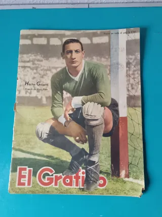Revista deportiva Argentina "El Grafico". En Argentina se vende a día de hoy entre 14.000 y 16.000 pesos Argentinos, de ahí su precio. - Portada con la presentación del arquero de River plate Héctor Grisetti. - La edición es la número 1482, con fecha del 5 de diciembre de 1947. ( Tal como se aprecia en las imágenes )